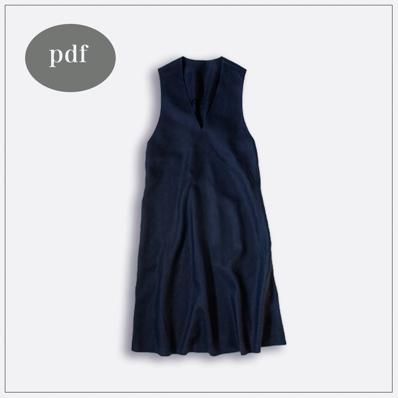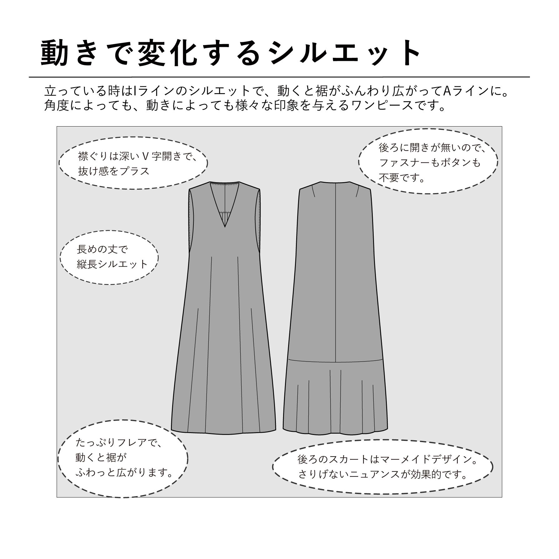 深いVネックと後ろのマーメイドシルエットが特徴のワンピースの型紙です。この商品はレディースアイテムとなります。