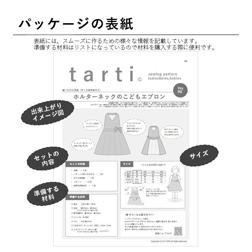 ❷パターンを利用した商品の販売 販売の際と、購入者への商品引き渡しの際にtarti の型紙だということを下記指定の方法で表示すれば可。