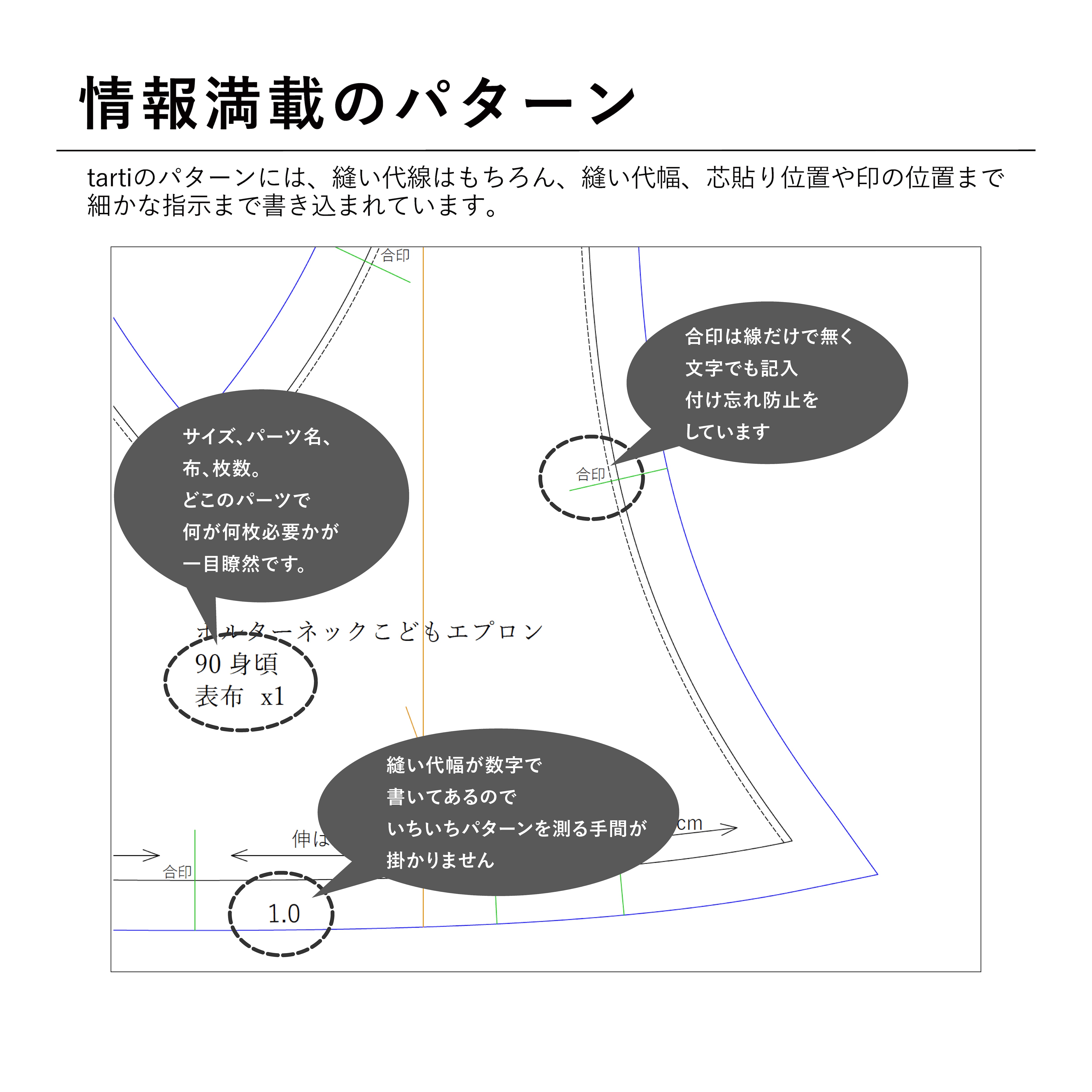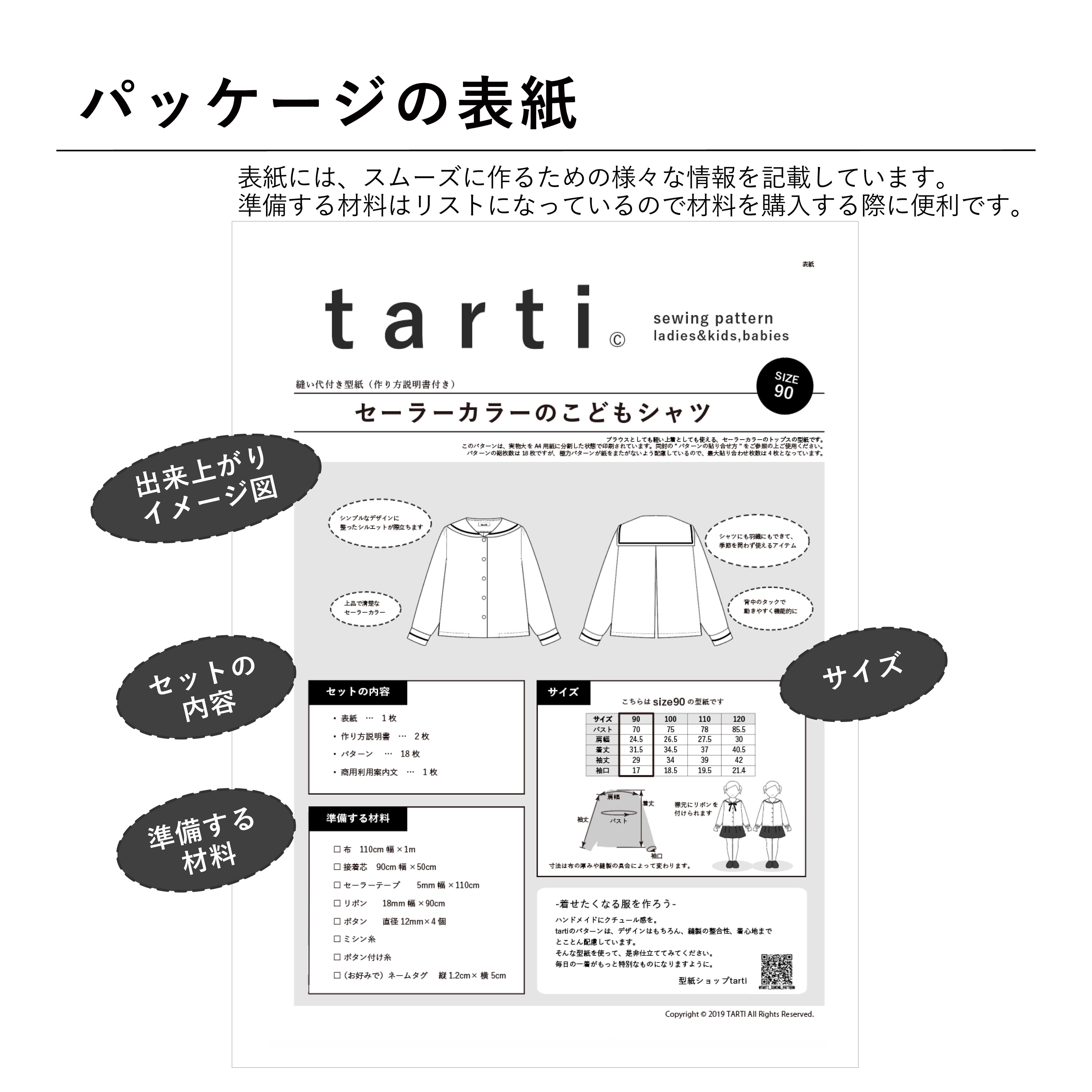 ❷パターンを利用した商品の販売 販売の際と、購入者への商品引き渡しの際にtarti の型紙だということを下記指定の方法で表示すれば可。