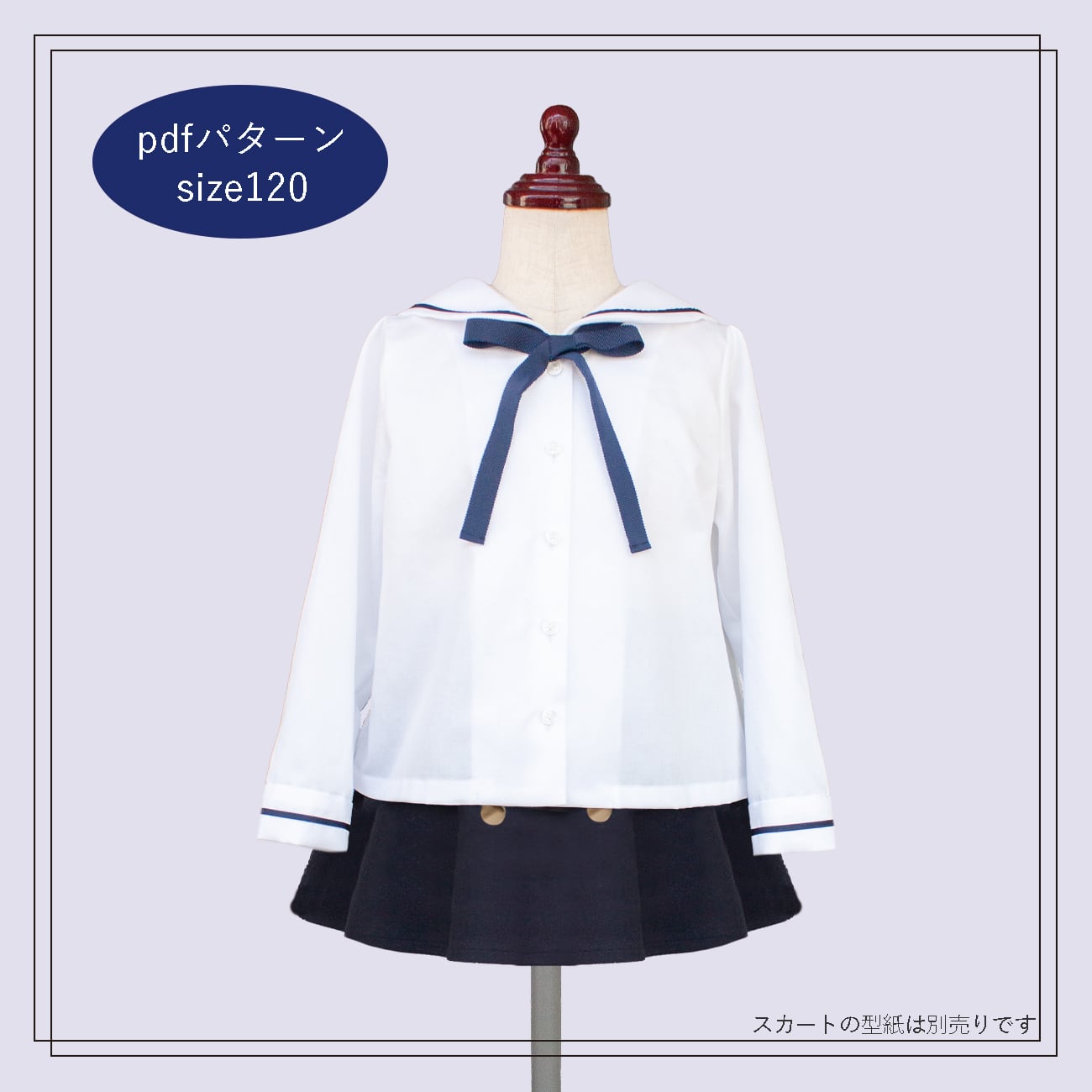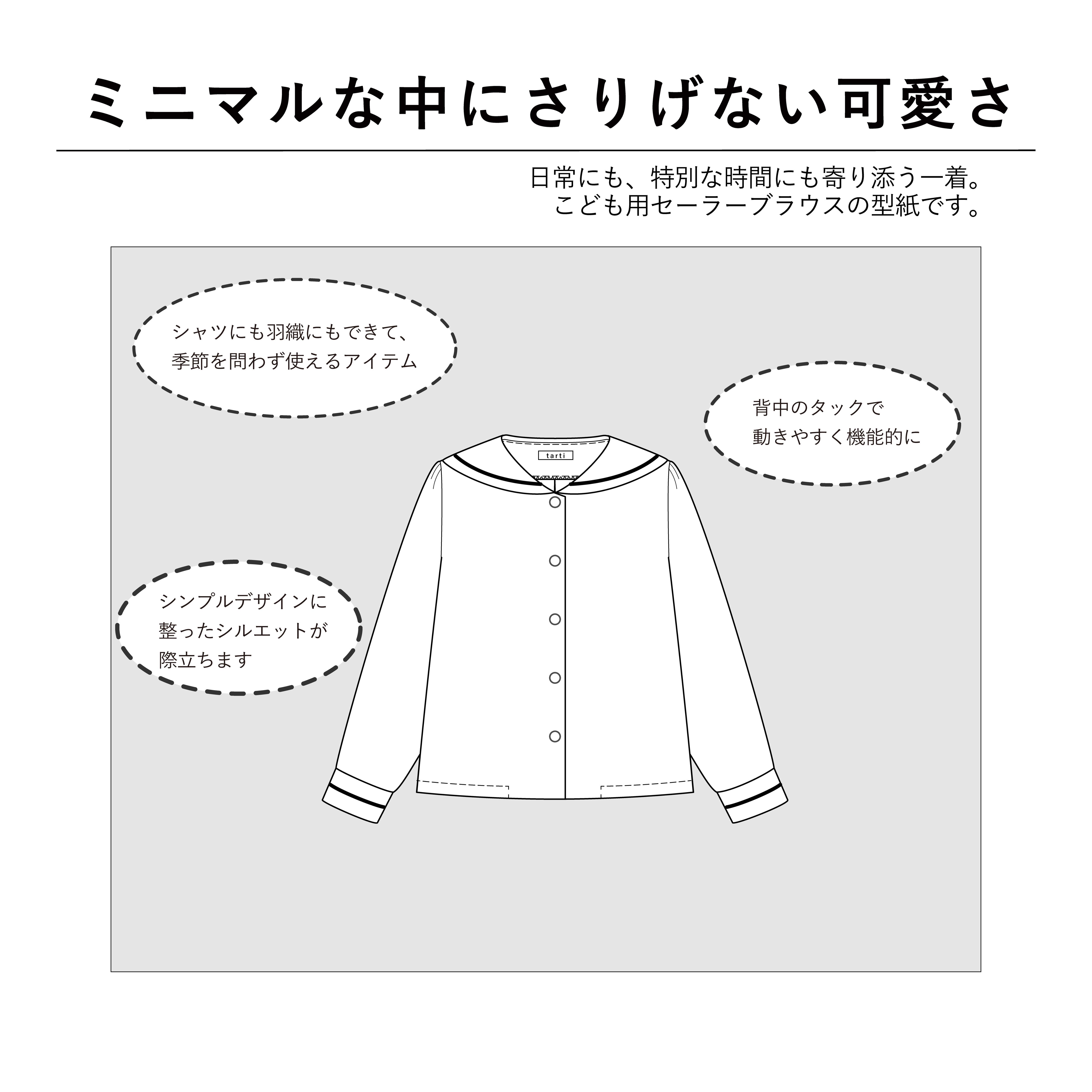 ブラウスにも軽い上着にもできる、こども用セーラーカラーのトップスの型紙です。
