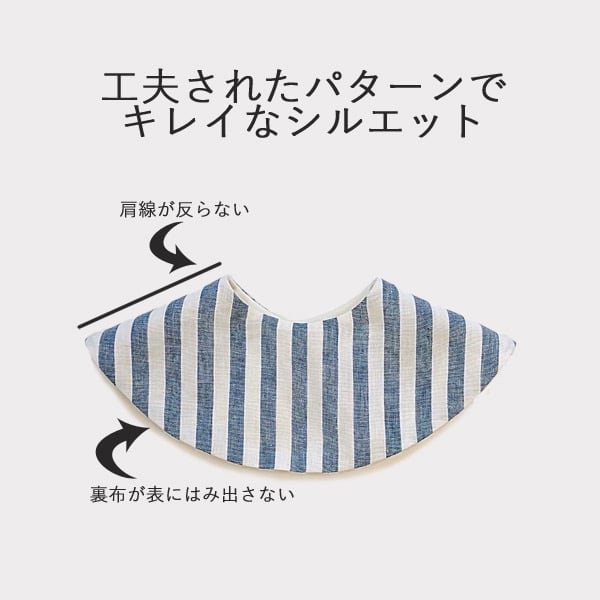 スタイは裏布が表に見えてしまわないこと、赤ちゃんが付けた際に肩線から反ってしまわないことがポイント。